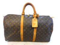 La gamme Keepall peut être déclinée en plusieurs matières et couleurs : toile Monogram, cuir épi